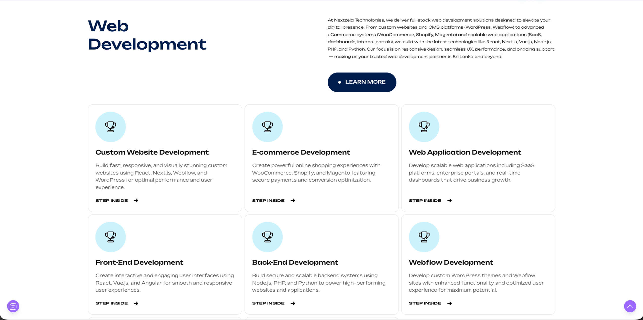 Nextzela Technologies specializes in AI-powered development and immersive 3D web experiences. Our portfolio showcases cutting-edge projects built with Next.js, TypeScript, React, Three.js, and advanced animation libraries. We create performant, interactive digital solutions that push the boundaries of modern web development.